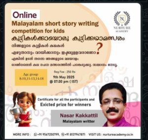 ✨ If your kid is interested in Malayalam Literature📔✍️, then let’s join Nurture Academy’s Online Malayalam Short Story writing Competition